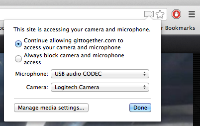 Chrome 27 was officially released. A list of WebRTC-related changes is available on the discuss-webrtc mailing list. One of the most visible changes as an end-user is the ability to select the camera and microphone from the “Omnibox” rather than digging through the Chrome settings.